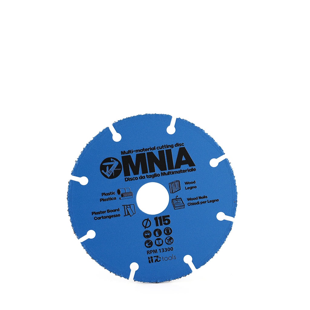 Omnia universal tungsten carbide cutting disc, 115 mm diameter. Ideal for precision cuts on plastic, wood, drywall and wood nails.