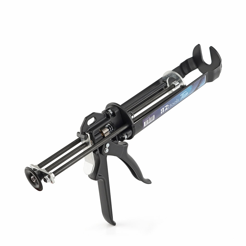 Pistola per resina e silicone “Top” da 410 ml, con forza massima di 450 kg, rapporto di spinta 24:1 e avanzamento di 3 mm. Peso 1250 gr.