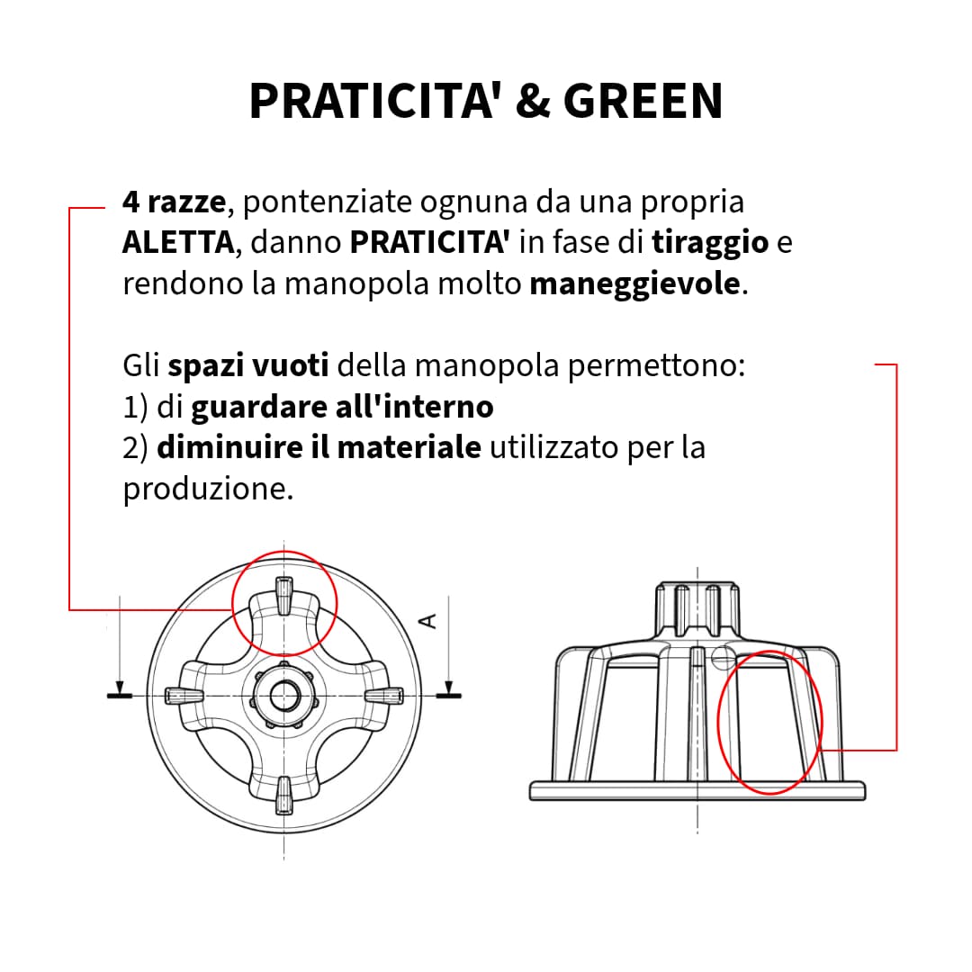 Il T' Plus promuove una posa ecologica con il suo sistema eco-sostenibile che consente il riutilizzo della manopola, diminuendo l'uso di plastica e contribuendo significativamente alla riduzione dell'impatto ambientale.